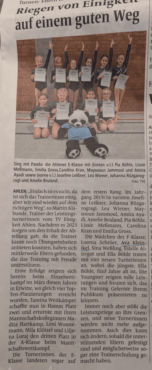 Nach acht Jahren Pause ist Ahlen wieder Gastgeber eines großen Turn-Events: Am 8. und 9. November richtet der TV Einigkeit Ahlen den Gaujugend-Mannschaftswettkampf im Gerätturnen aus. In der Friedrich-Ebert-Halle zeigen rund 420 Turnerinnen aus dem Hellweg-Märkischen Turngau ihr Können – der Eintritt ist frei.